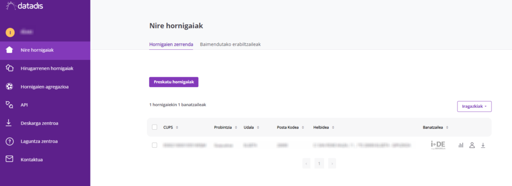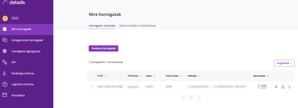 Bertan, erabiltzaile bakoitzak, bere izenean dauden enpresa merkaturatzaile desberdinen hornidura puntu guztien elektrizitate kontsumoak aztertu ditzake.
