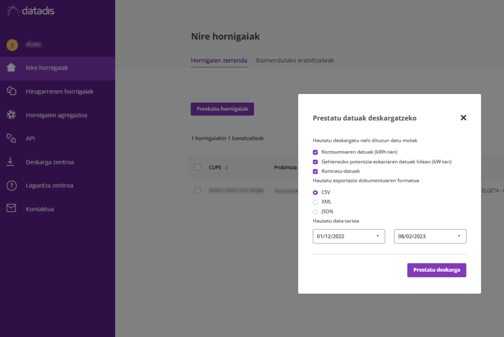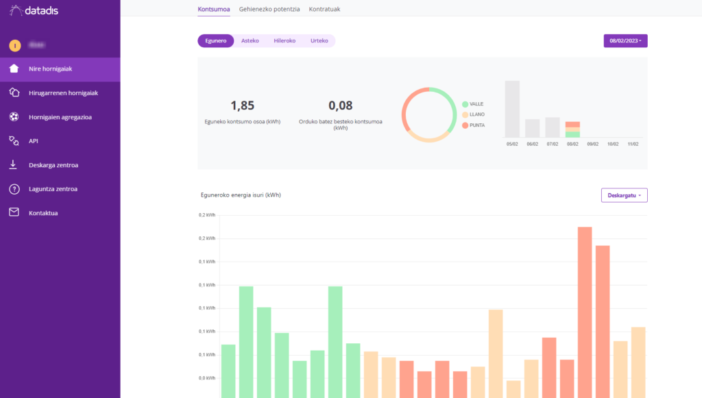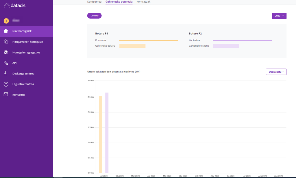 Datadis, elektrizitate kontsumoa eta maximetroak (hilean erabilitako potentzia maximoa) ezagutzeko doako plataforma bat da.