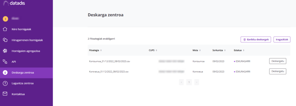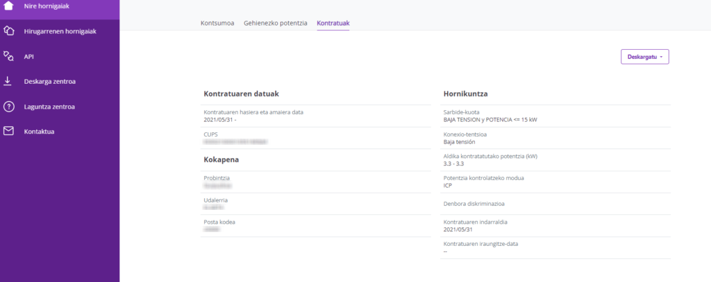 Energía kontsumoa, gehienezko potentzia eta kontratuen datuen deskargak, banan banan egin beharrean, modu masibo batetan jaitsi daitezke.