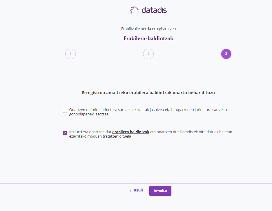 Ondoren, prozesuarekin jarraitu eta erabilera baldintzak onartu:
